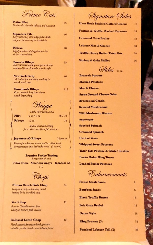 Porch and Parlor Menu